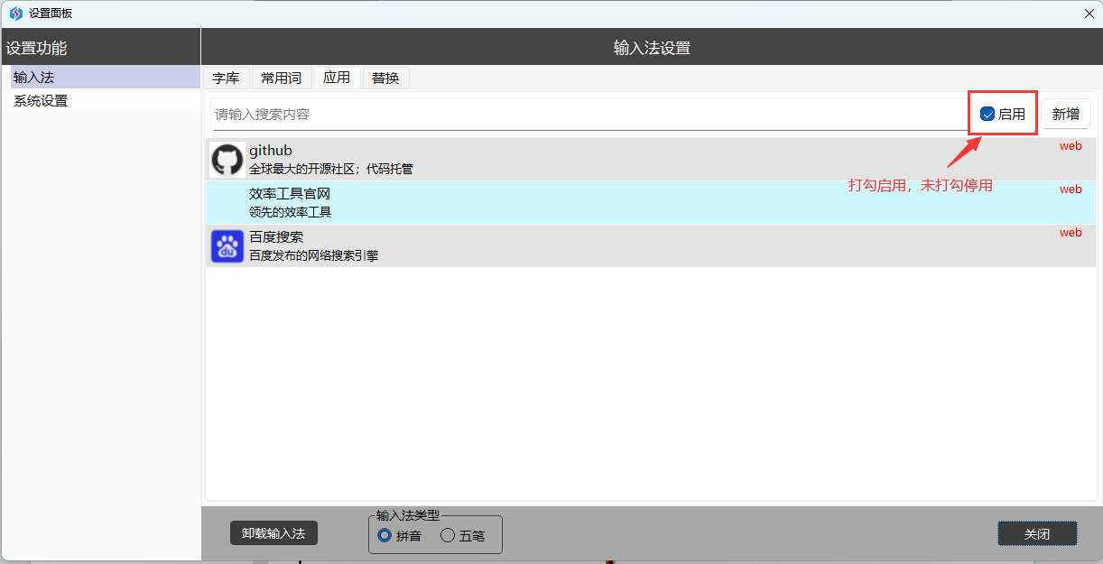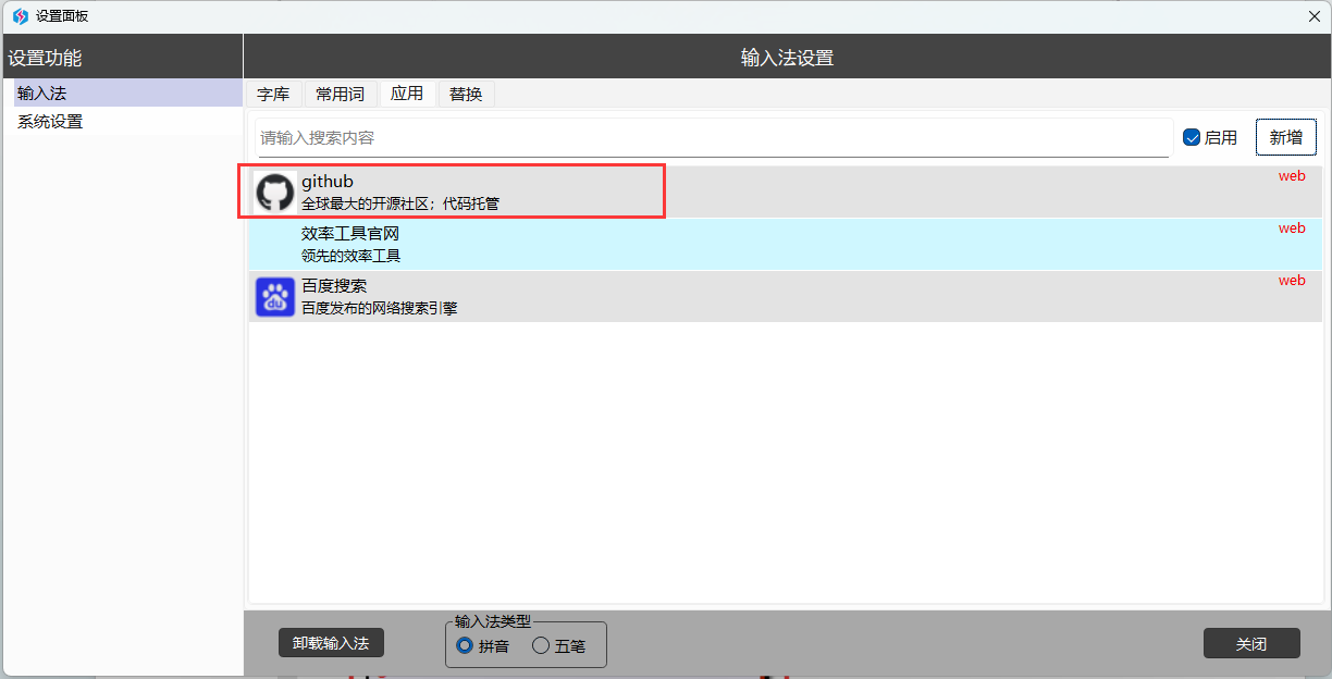 三、支持直接从输入法打开应用,提供另一种打开应用快捷方式。