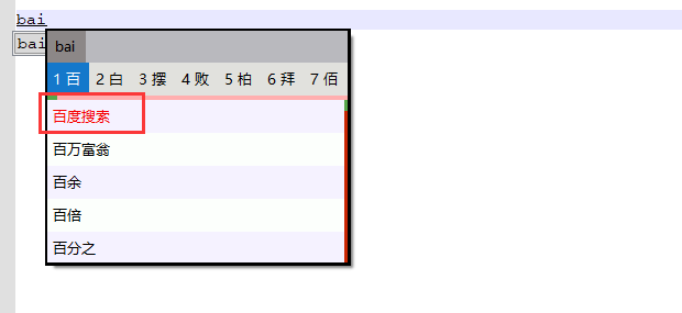 输入法表现如下图所示,高亮选择“百度搜索”按空格键或回车键,可以打开浏览器访问百度搜索。