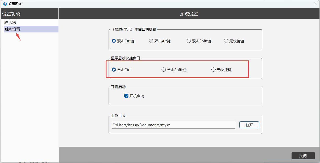 默认是通过单击Ctrl键弹出悬浮窗口,修改本配置如下图所示,选项“无快捷键”是取消悬浮窗口。