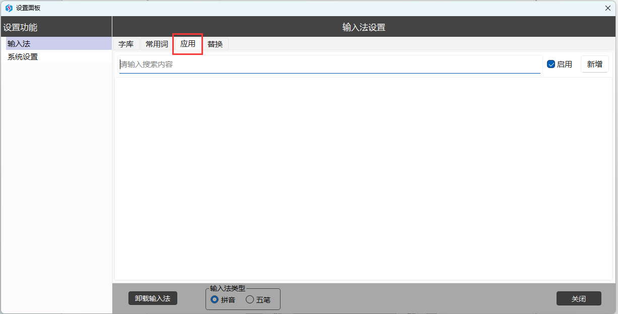 本输入法不仅输入文字,还可以通过输入法快捷打开应用,初始应用是空的,如下图所示。