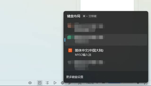 安装输入法成功会在语言栏显示MYSO输入法,如图所示。