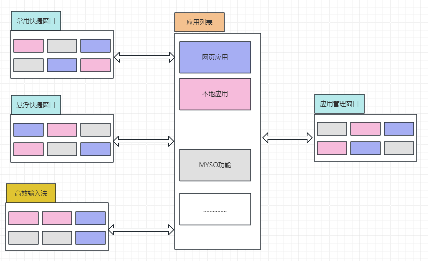 3. 预置应用:随MYSO一起发布的应用,可以是网页应用;本地应用;MYSO功能,不可以修改或删除。