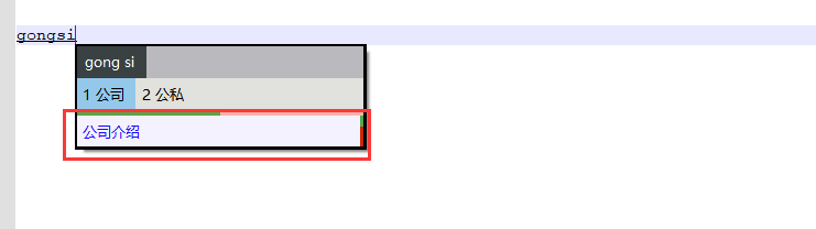 在输入法中输入gongsi,显示如下图显示蓝色“公司介绍”是替换功能的简短名称。